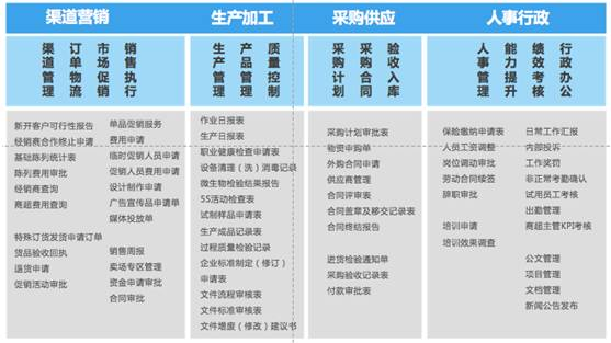 ● 业务管控:建设符合食品制造行业及用户自身管理需要的综合业务管控模型,涵盖成本费用、产品生产、安全质检、市场营销等特定业务板块。