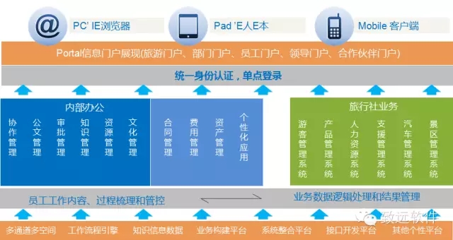 但一提到管理信息化,很多企业难不免要问一句:什么是真正意义的信息化,我希望达到的效果是“围绕以管理为核心底层结构架设起科学的业务侧重配比”,而不是功能的堆砌。 面对不断变化的旅游市场,旅行社经营管理和行业管理不断更新,旅行社协同管理软件能很好地整合“食、宿、行、游、购、娱”六大旅游信息资源。企业可以把复杂的数据运算交给业务系统,将人性化的过程管理交给协同,业务系统与协同相互配合,刚柔并济,对纷繁复杂的企业管理来说能补充刚性流程的人性化缺失,也能将人性化高效沟通落地到切实的业务工作。 把复杂的数据运算交给业务系统,将人性化的过程管理交给协同。
